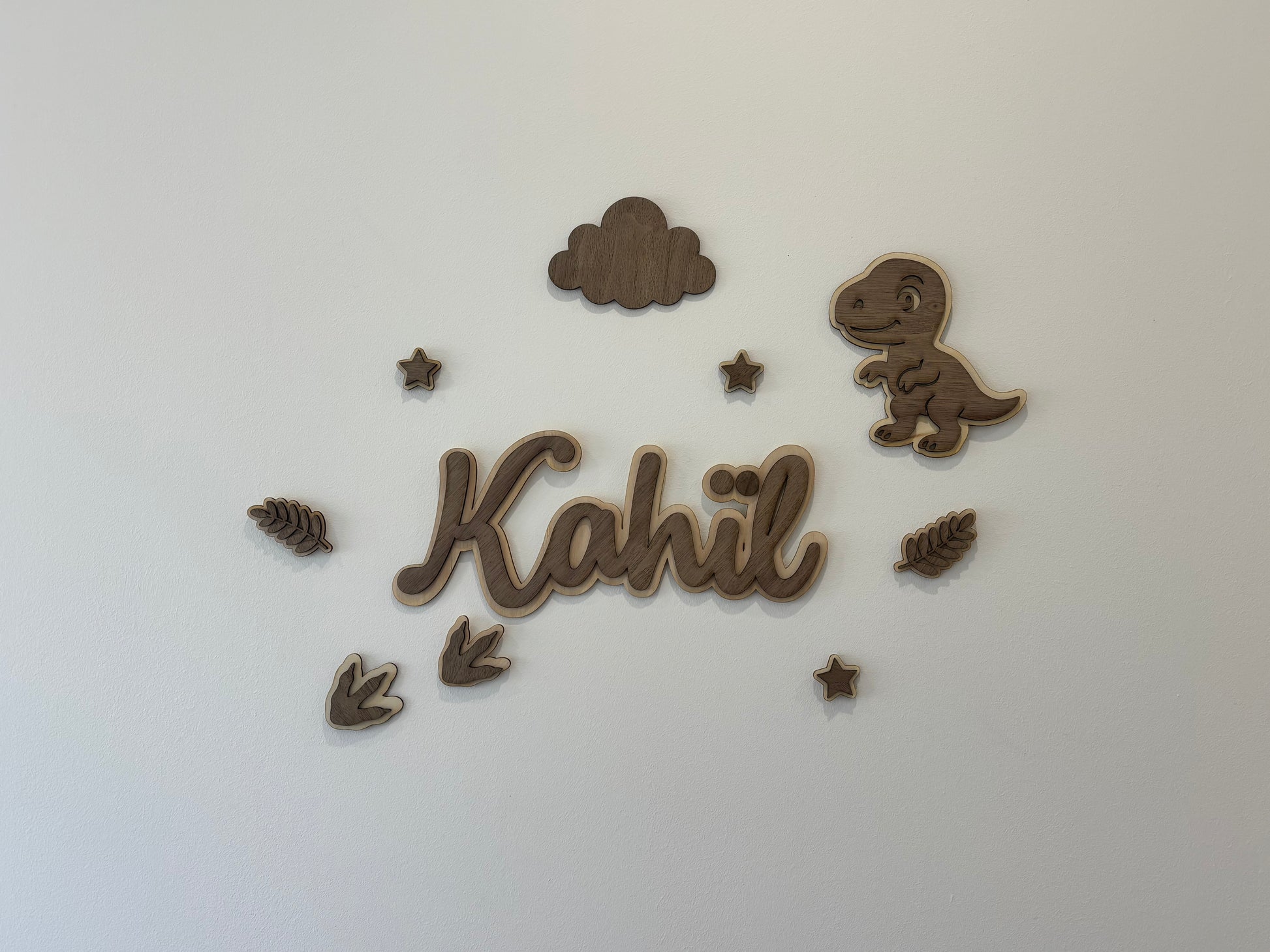 Ensemble Plaques murales avec prénom personnalisée et décoration – Thème Dinosaure
